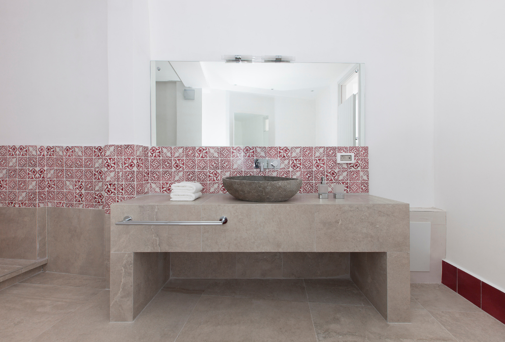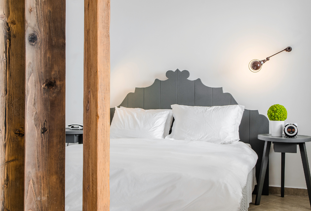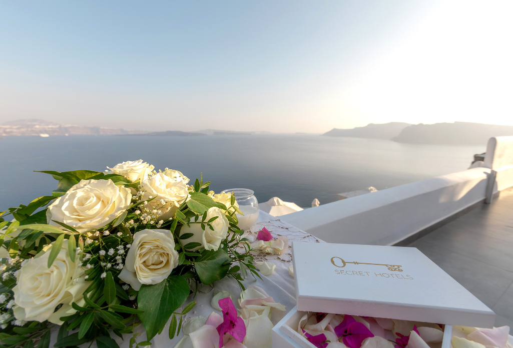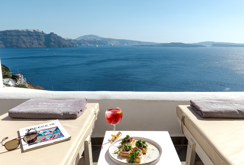 Private balcony of 45 m2 featuring a Private Outdoor hot tub, dining area and sun beds.